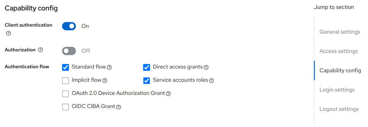 Jans Keycloak Link accesses Keycloak data via Keycloak API. A new client needs to be created on Keycloak in order to authorize Jans Keycloak Link for API access. The client can be configured to use one of the two authentication mechanisms: