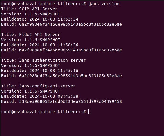 Displays the version and build information of the currently installed Janssen Server.